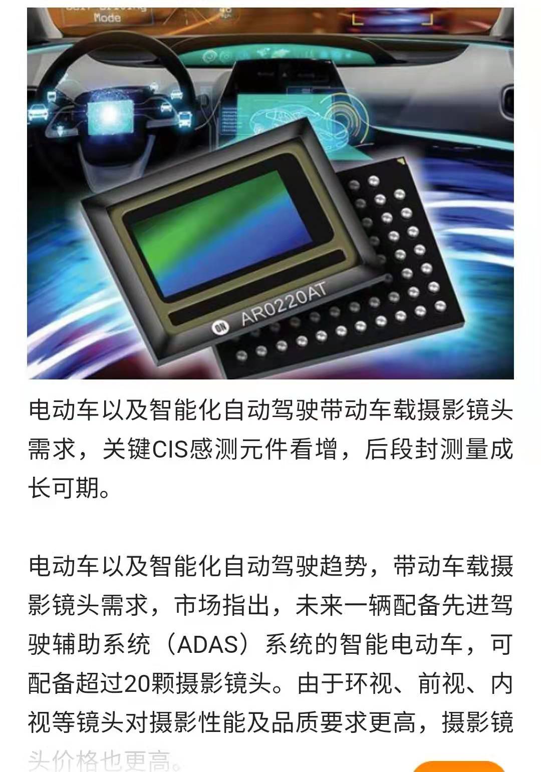 智能車帶動(dòng)CMOS后段封測(cè)廠需求
