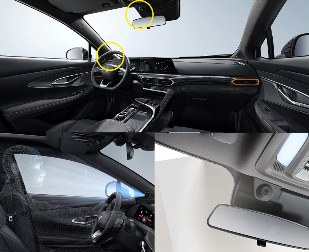另一種則是集成在內(nèi)后視鏡位置,除了服務(wù)駕駛員,還可以額外提供乘員監(jiān)控功能(車內(nèi)行車記錄功能),甚至包括兒童/遺留物檢測(cè)、安全帶檢測(cè)和識(shí)別特定乘客等功能。