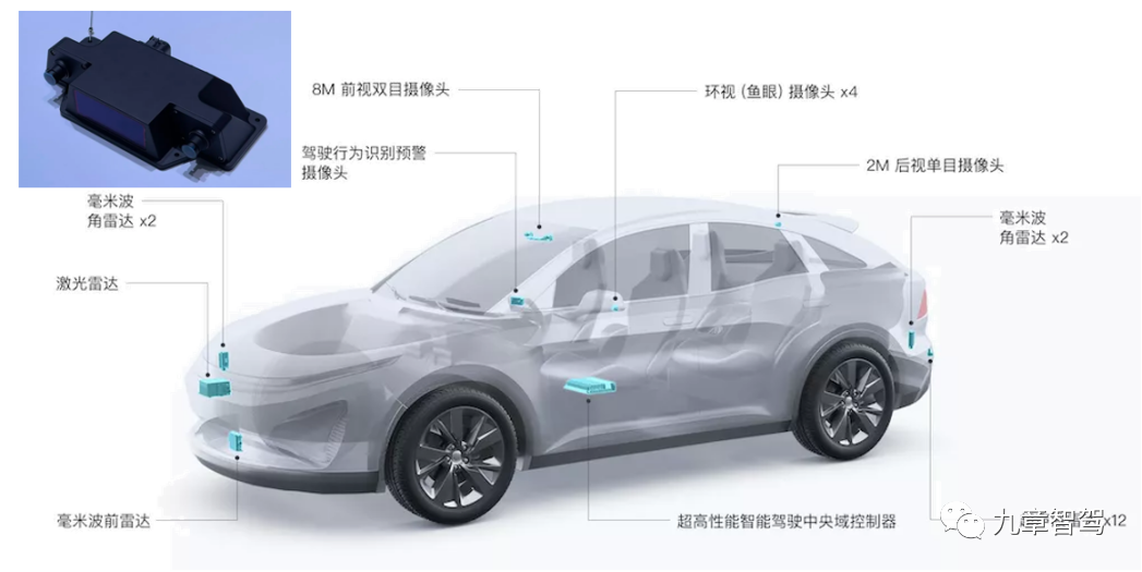 a. 感知解決方案:激光雷達(前置)*1 + 前置毫米波雷達*1 + 角雷達*4 + 前視(8MP雙目 - 兩個攝像頭參數(shù)規(guī)格完全相同)+ 環(huán)視*4 + 后視*1(2MP)+ DMS監(jiān)控攝像頭*1